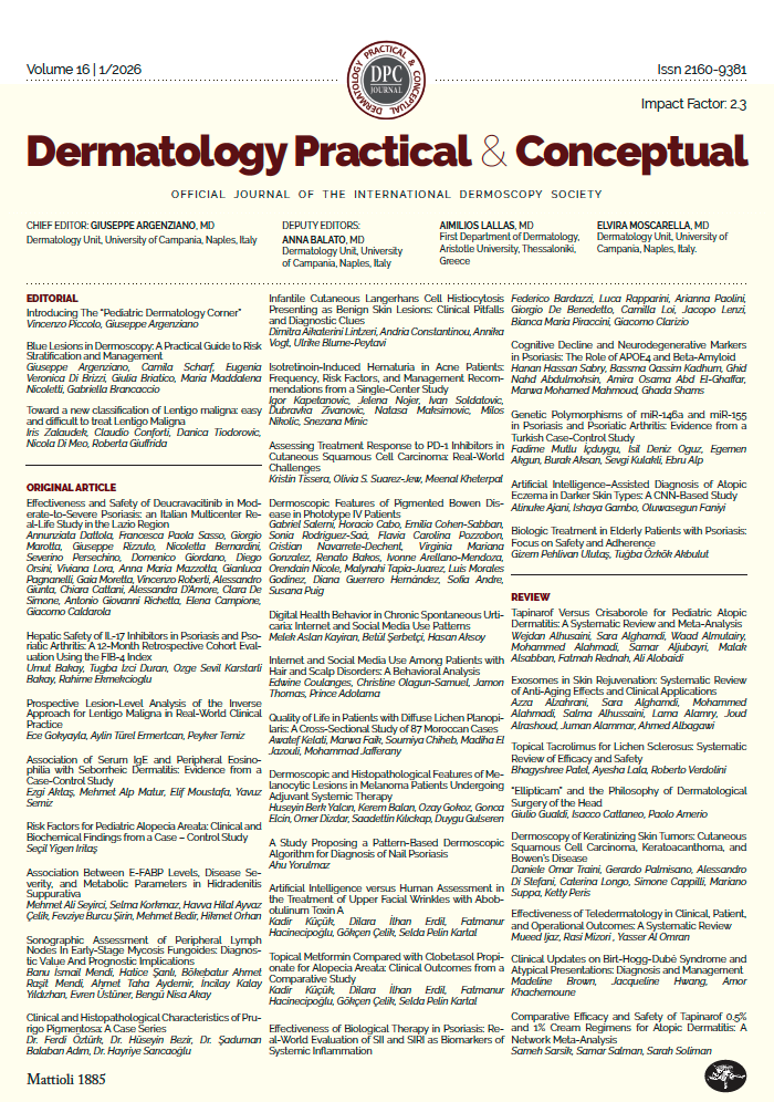 Dermatology Practical & Conceptual applies a Creative Commons Attribution License (CCAL) to all works we publish (http://creativecommons.org/licenses/by-nc/4.0/). Authors retain the copyright for their published work.